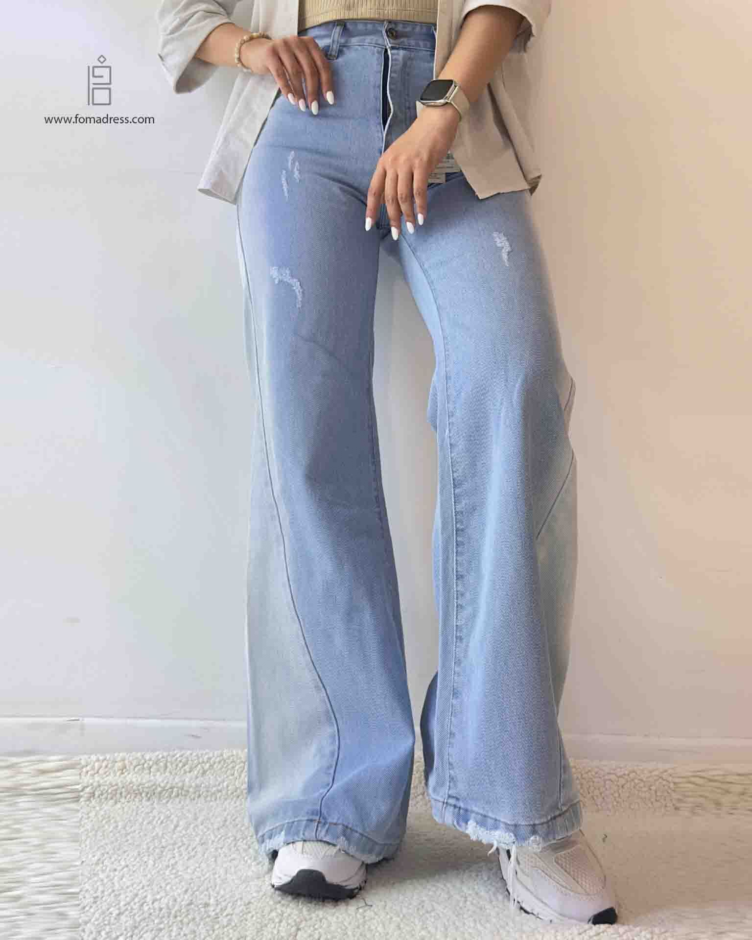 - تک رنگ آبی یخی - جلو زیپ و دکمه - کشسانی ندارد